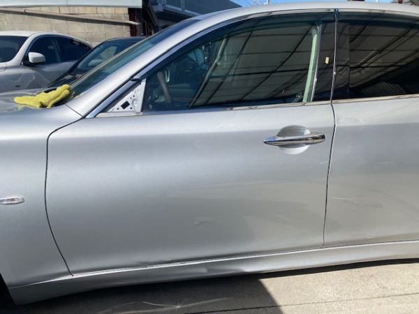 > 日産 NISSAN フーガ Y51 純正 カラー:K23 フロント F ドア 左 L 助手席側 キズ 凹みあり ドアミラーなし No.3252