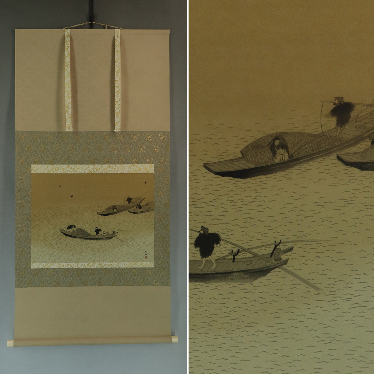 - 【巧芸】横山大観【漁舟】◆紙本◆共箱◆掛軸 u12007