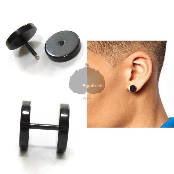 > YGG★新品 プラグ バーベル ダンベル ピアス 黒 大 10mm 18G ブラック g-dragon ジヨン 1個 片耳 BTS 登坂 メンズ アクセサリー