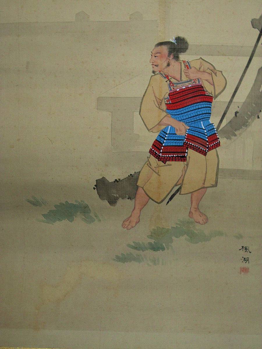 - No170 掛け軸 マクリ 武者絵 松本楓湖 表具する必要があります