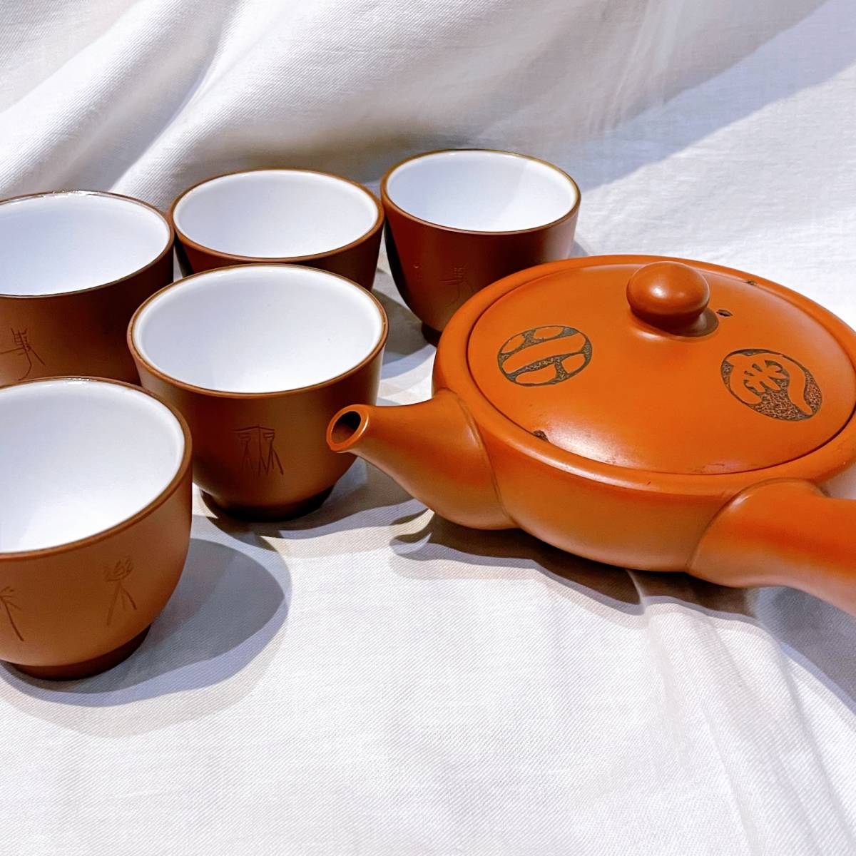 - アンティーク 中国茶器「陶雄」急須「昭?」湯呑み 6点セット!蔵出し 酒器 おちょこ 古民家 茶道具 インテリア 骨董 ビンテージ 雑貨 陶器