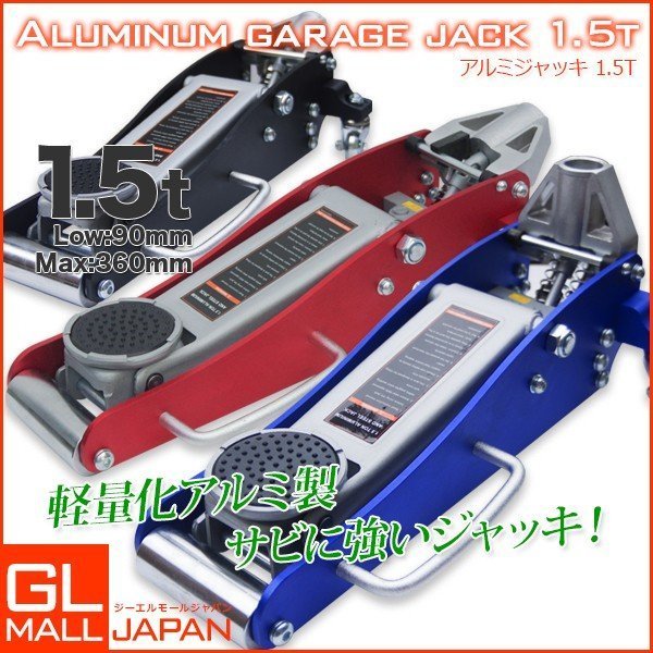 - 油圧式 ガレージジャッキ 1.5t デュアルポンプ アルミスチール ローダウン フロアジャッキ 油圧ジャッキ メンテナンス 赤 黒 選択