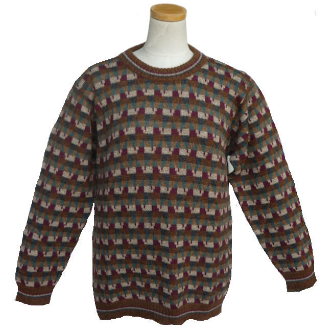 > 送料無料 アルパカ100% ALC-076 セーター 丸首 可愛い 綺麗 幾何学 インカ アンデス ペルー 安価 アルパカ インカ 民族柄 アンデス