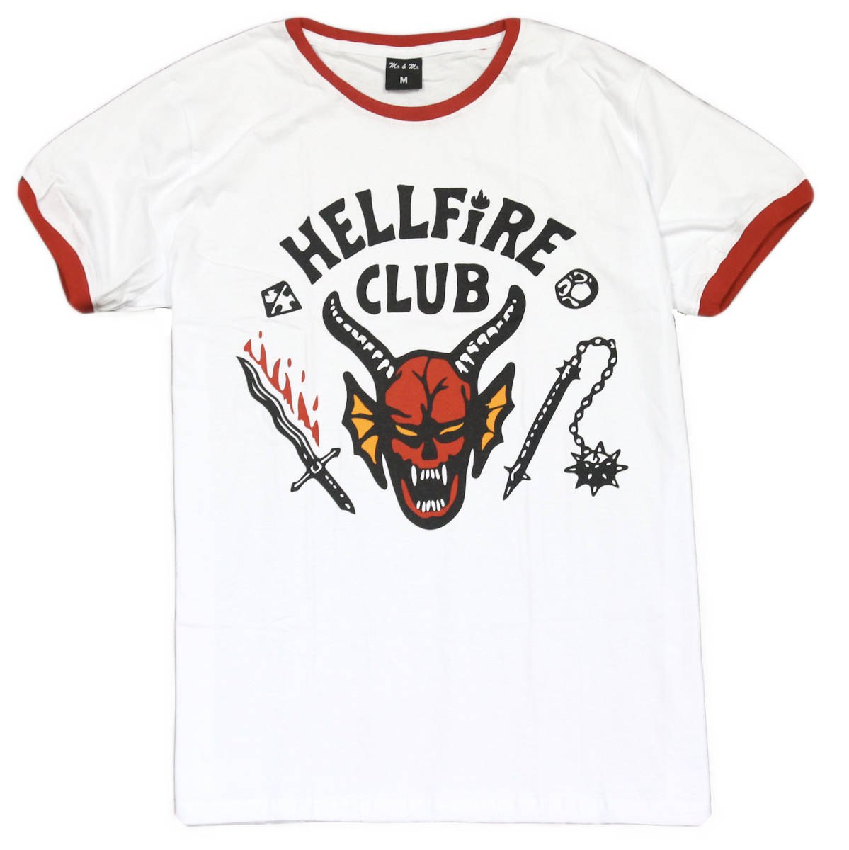 - ストレンジャーシングス ヘルファイヤークラブ リンガー ストリート系 デザインTシャツ おもしろTシャツ メンズ 半袖★tsr0830-red-l