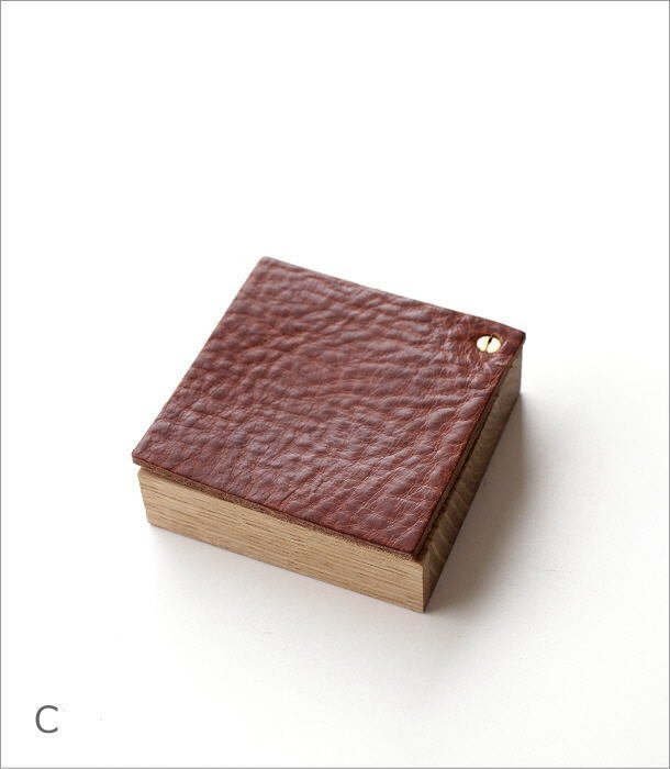> 小物入れ 天然木 オーク 本革 ふた付き 小さい ウッドと本革のアクセサリーケース 【Cタイプ】 送料無料(一部地域除く) ras9780c