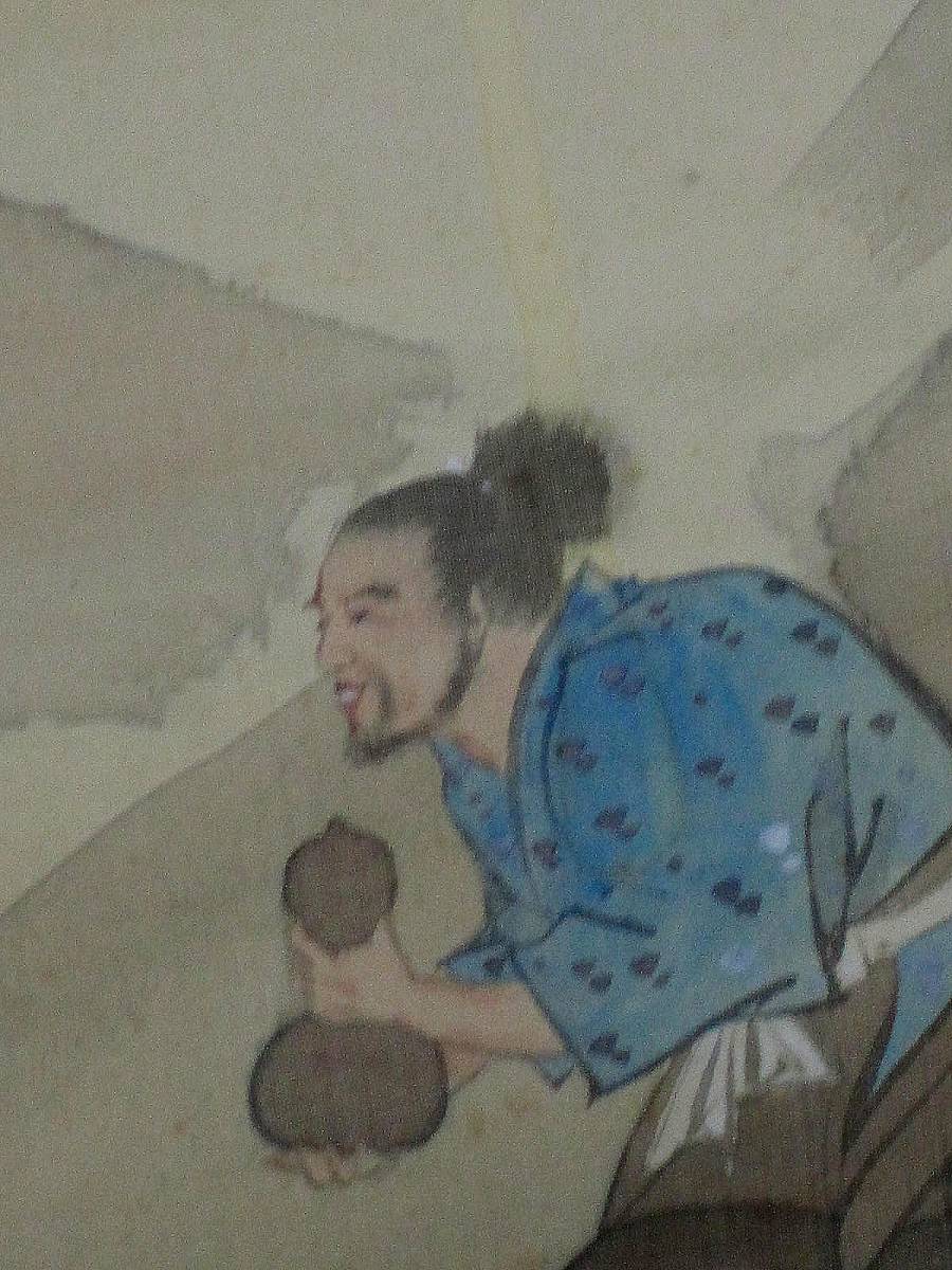 - No172 掛け軸 武者絵マクリ 松本楓湖 瓢箪 メクリ 要表具