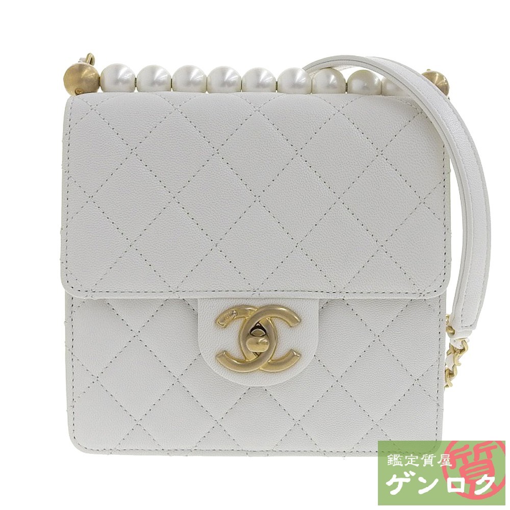 > 【中古】CHANEL シャネル マトラッセ パール付き ショルダーバッグ ポーチ ホワイト レザー 28番台 レディース【質屋】