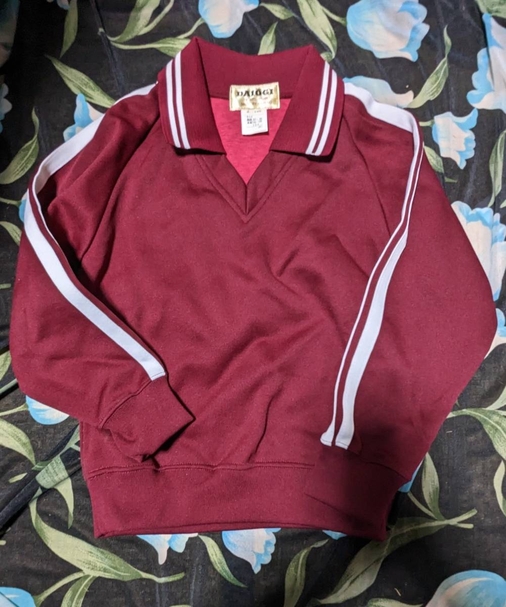 - 未使用 ジャージ上 120サイズ 体操服 エンジ ダイオウギ ライン入り 昭和 デットストック