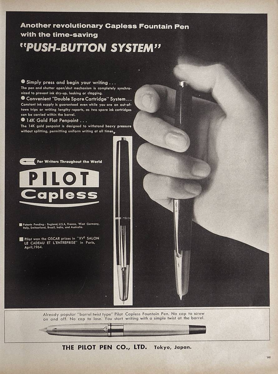 - 稀少・広告!1964年パイロット万年筆広告/Pilot Capless Pen/文房具/酒/P