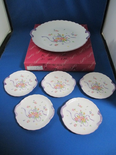 - ★リボンフラワー TOMINAGA JAPAN 丸パーティセット ※少々汚れ・細かいキズ・貫入あり 箱に文字あり tm2304-7-7★