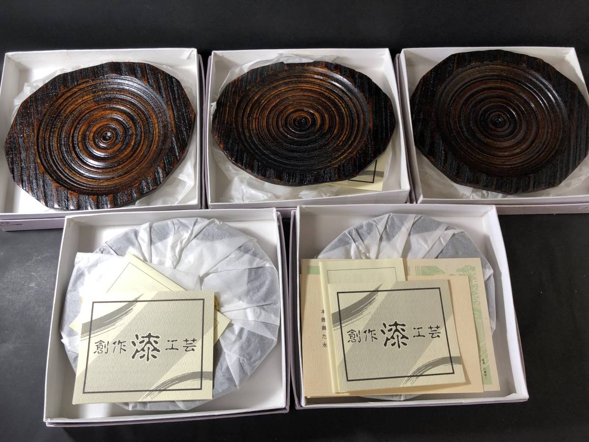 - 高級木製漆器 ゆがみプレート6寸 菓子皿 銘々盆 プレート皿 5客 紙箱入 木製皿 生活雑貨 テーブルコーディネート