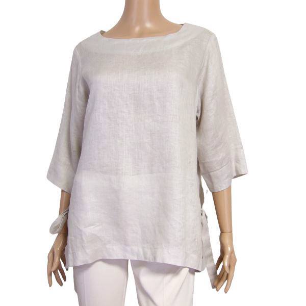 > 美品/ドゥクラッセ DoCLASSE チュニック 小さいサイズ 表記 7号 S 相当 古着 アイボリー レディース 春 夏 トップス 麻100 リネン 7分袖