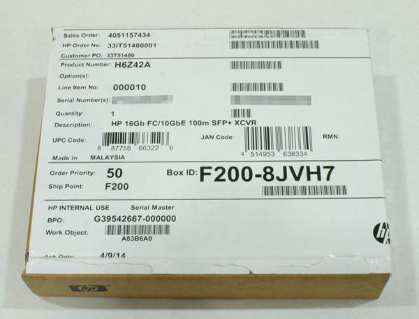 HP H6Z42A 16Gb FC/10GbE 100m Converged SFP+ XCVRです。