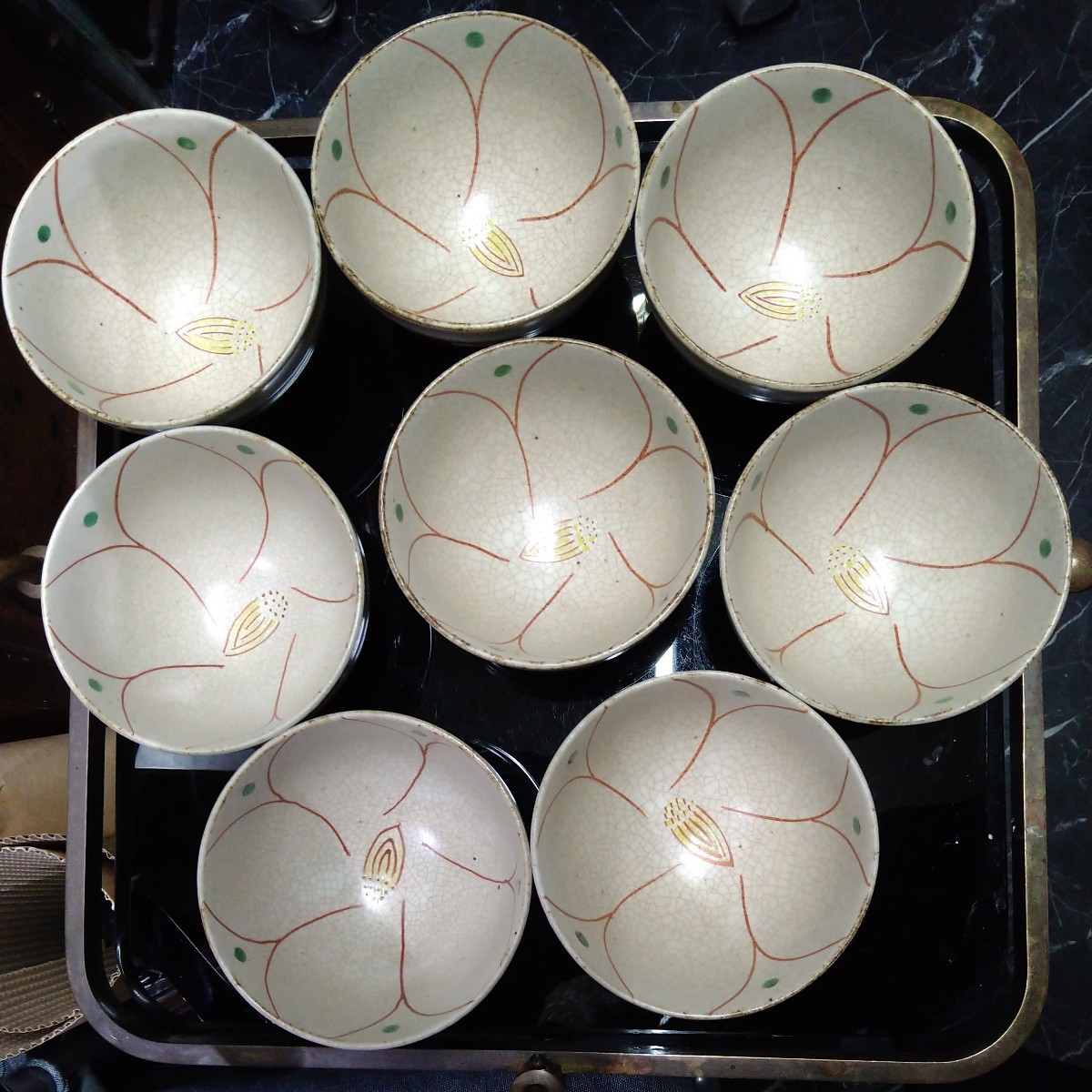 - 丹山窯 小鉢8客 口直径11cm 高さ8cm 懐石 料亭 5弁花柄