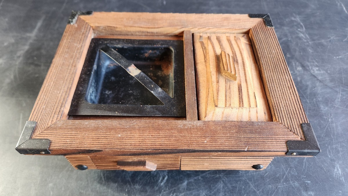 - 杉細工 灰皿 囲炉裏風 ライター入れ付 民芸品 秋田 昭和レトロ 煙草