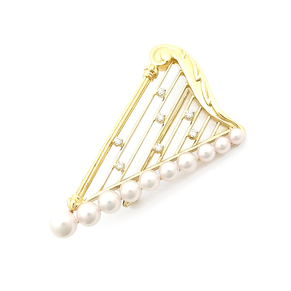 | コメント | 煌めく7石のダイヤモンドと10粒のアコヤ真珠が美しいハーモニーを奏でる、楽器ハープをモチーフにしたミキモト(MIKIMOTO)のブローチ。細部にまで拘った優雅でエレガントなジュエリーです。 総重量11.2g 緑屋商品番号:5006439 | | 程度 | 中古Aランク | | 素材・色 | K18YG | | サイズ | 全長51.2mmx最大幅30.0mm | | 付属品 | ギャランティーカードなし 箱なし |
