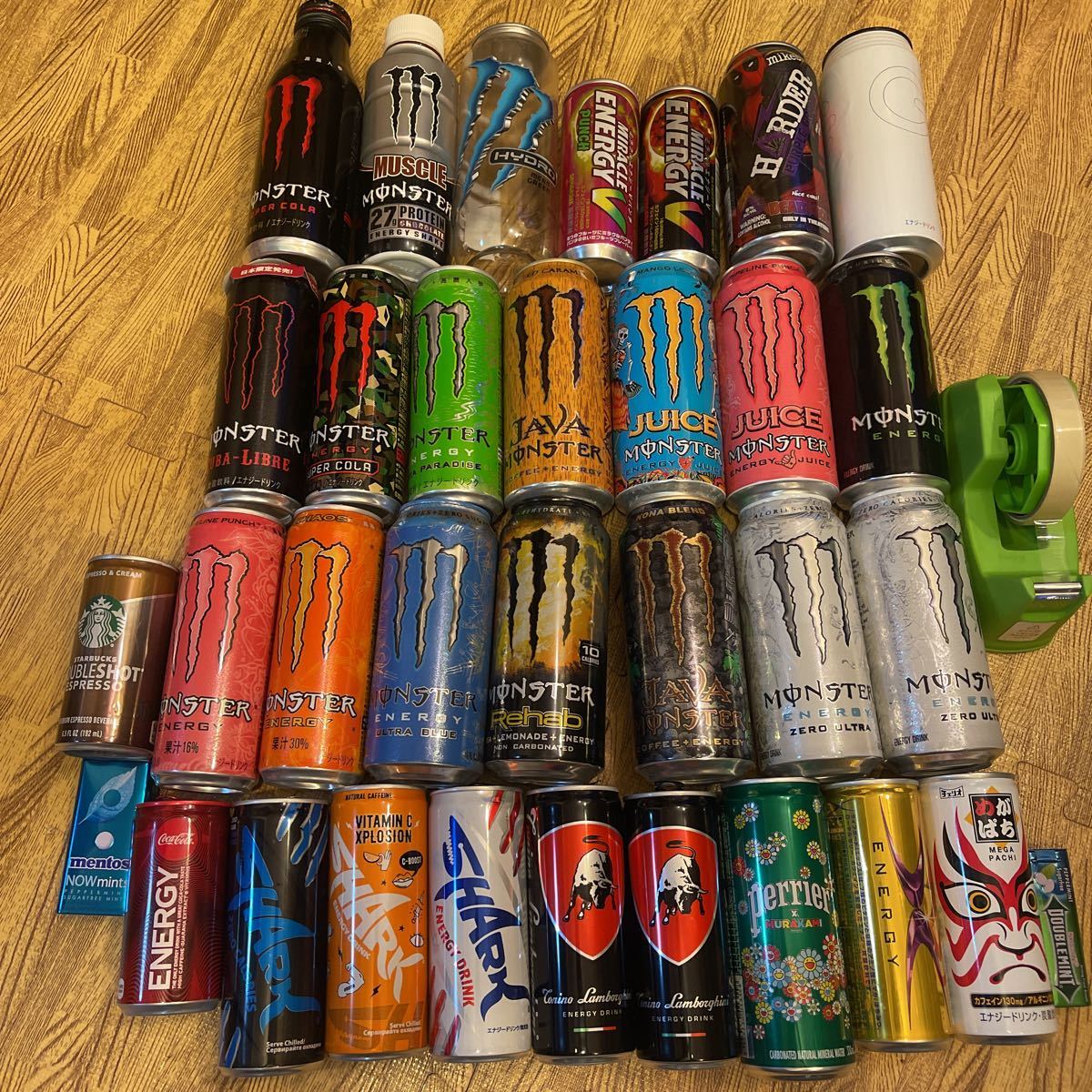- 海外限定 Monster 等 エナジードリンク 等 空缶 33点 大量セット オブジェ コレクションに レッドブル メントス