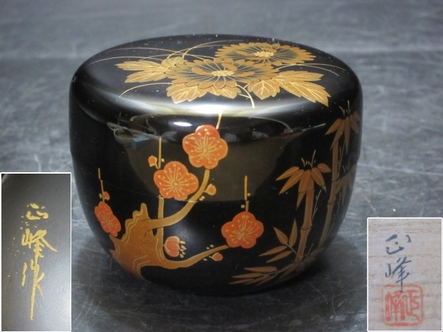 - 牧野正峰 造 蒔絵四君子 平棗 共箱 検)輪島塗