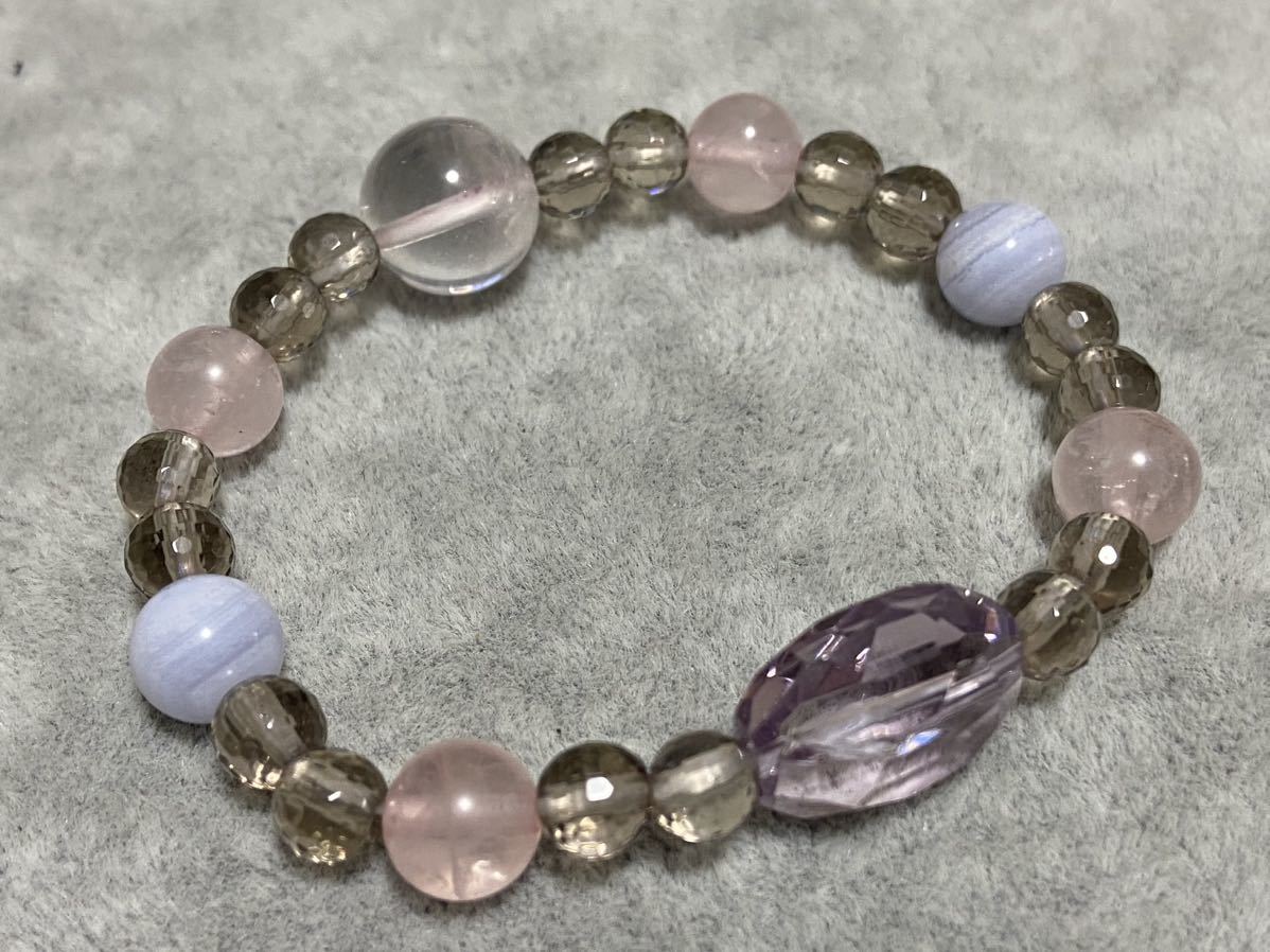 - アメジスト スモーキークォーツ ローズクォーツ ブルーレースアゲート 天然石パワーストーン一点物