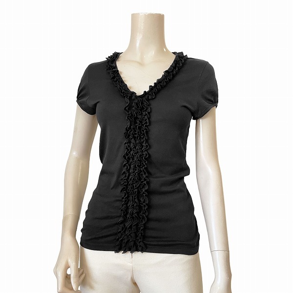 - QM極美品★アナイ*ANAYI★黒★柔らかコットン素材★たっぷり贅沢フリル★Vネック★半袖カットソー★38号(M)/レディース/夏