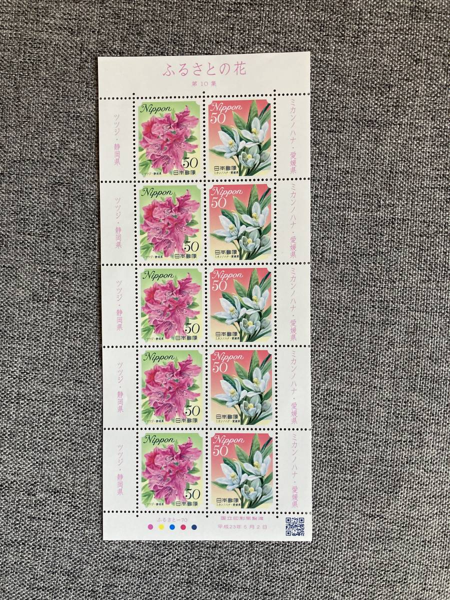 - ★未使用 ふるさと切手 ふるさとの花シリーズ 第10集 切手シート ツツジ 静岡県 ミカンノハナ 愛媛県 50円10枚 平成23年2011年 日本郵便