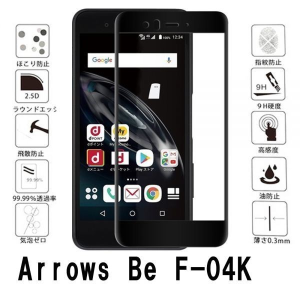 - 在庫処分 黒 arrows Be F-04K アローズ ガラス フィルム 保護 3D 加工 曲面 硬度 9H カバー シール シート Glass Film スクリーン 黒