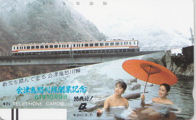 - 会津鬼怒川線開業…/温泉 女性入浴 鉄道【テレカ】F. 11.14 ★送料最安60円~