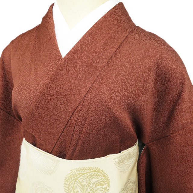 > ★きもの北條★ 御茶着 お茶着 茶道 シンプルで品良い装いに 茶色 着物 色無地 A820-10 M 【中古】