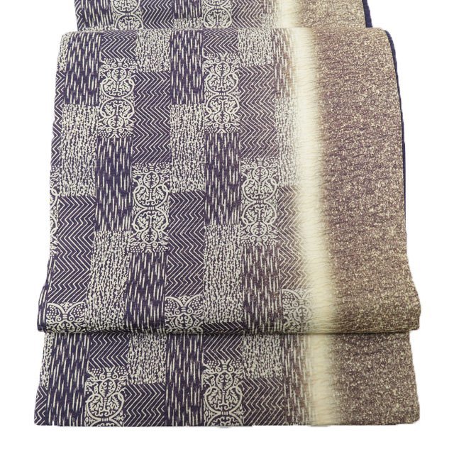 - ★きもの北條★ 全通 洗練されたカジュアルな装いに 鳩羽色 袋帯 A796-10 【中古】
