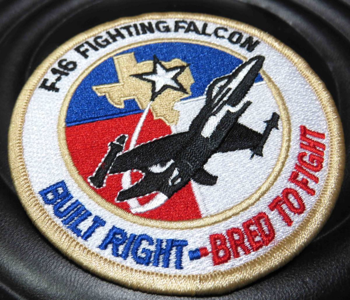 - 円型(青赤白)◆新品アメリカ US F-16 FIGHTING FALCON BUILT RIGHT BRED TO FIGHT TEXASテキサス 戦闘機ミリタリーワッペン