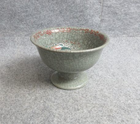 - 【政】32639 相馬焼盃洗 鶴亀 骨董 古物