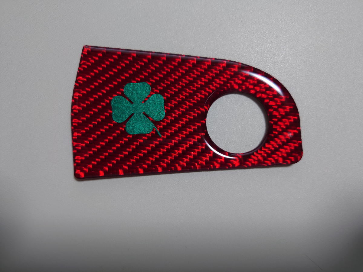- [1点のみ]アルファロメオ 新型ジュリア(952) 右ハンドル車向け クローバー 四つ葉タイプ グローブボックスレバー 装飾 赤カーボンカバー