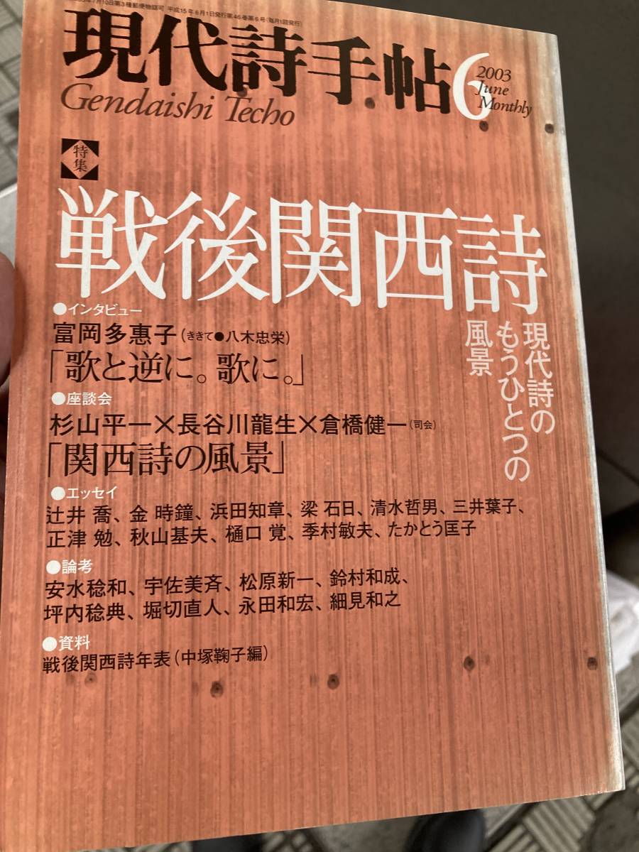 - 現代詩手帖 2003年6月号 戦後関西詩 富岡多恵子、杉山平一、長谷川龍生、安水稔和、永田和宏、松原新一、辻井喬