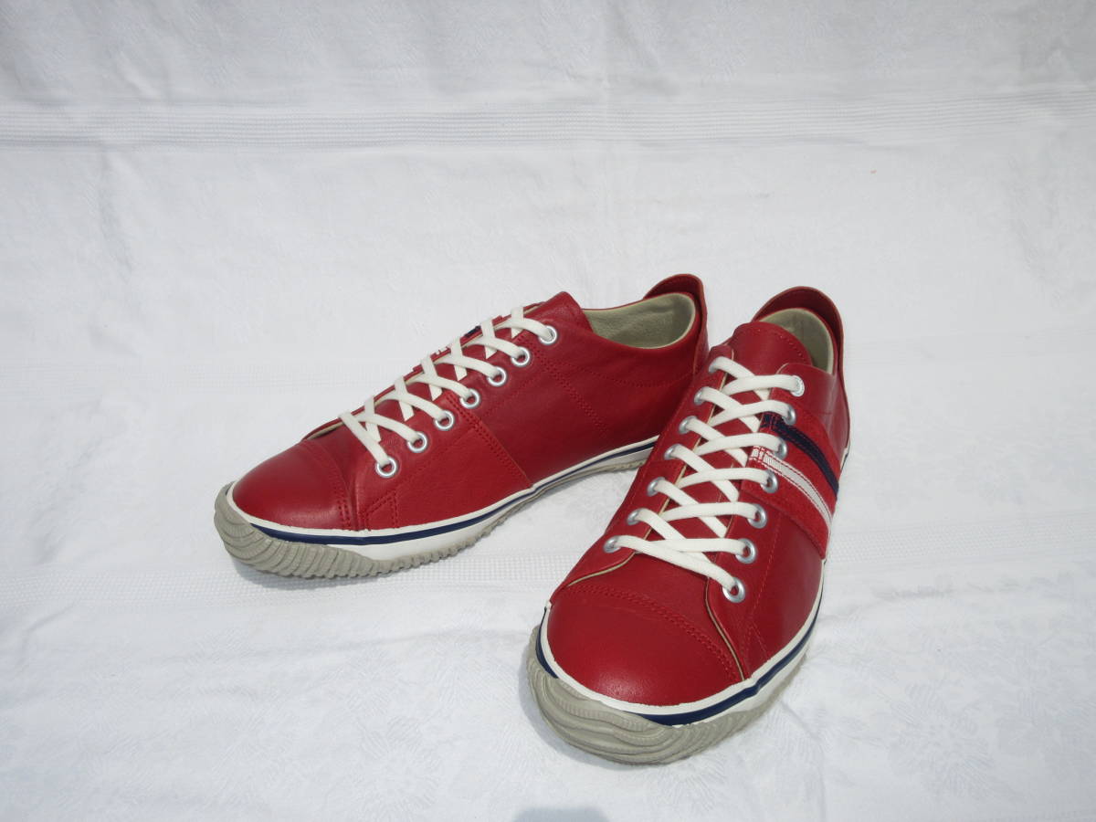 - ほぼ新品 美品! SPINGLE MOVE スピングルムーブ ローカット レッド× ホワイト 日本製 レザー24,5cm Sサイズ JAPAN 広島