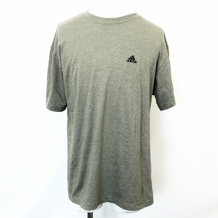 - アディダス adidas 半袖Tシャツ カットソー ワンポイントロゴ刺繍 丸首 服 綿×ポリエステル S くすみヘザーグリーンカーキ 緑系 メンズ