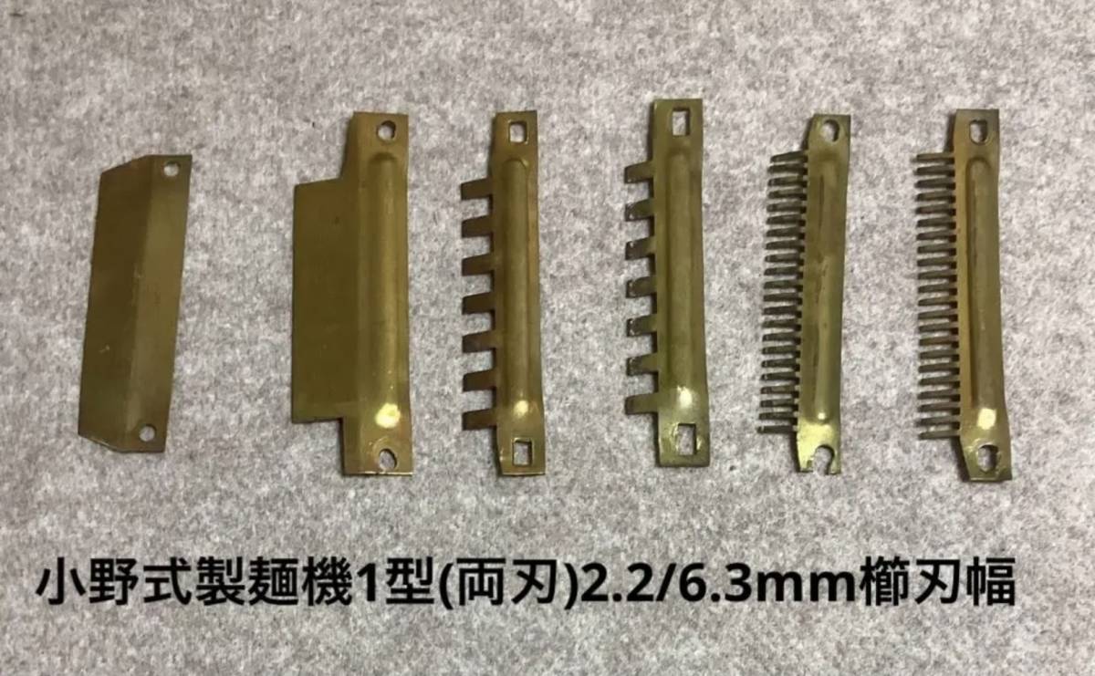 - 小野式製麺機1型(両刃)2.2/6.3mm櫛刃幅 圧廷ローラー抑え刄セット①