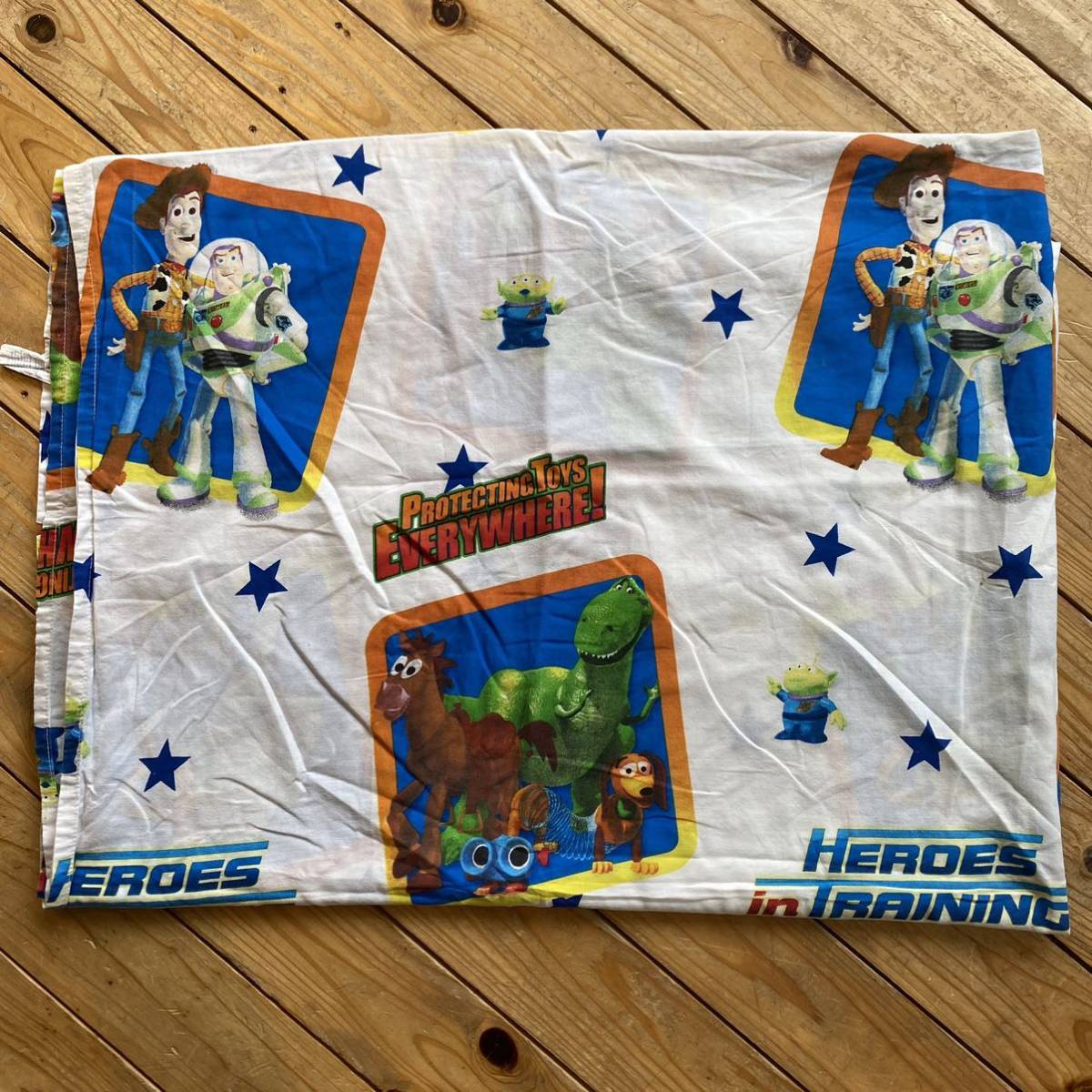 - USAヴィンテージ ベッドシーツ トイストーリー リメイク生地 素材 フラットシーツ ディズニー ピクサー ウッディ アメリカ仕入 総柄 B1565