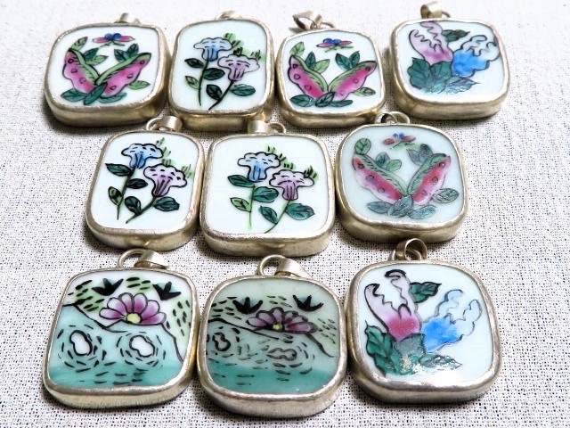 - ペンダントトップまとめて10点 チャーム 粉彩 色絵磁器 中国