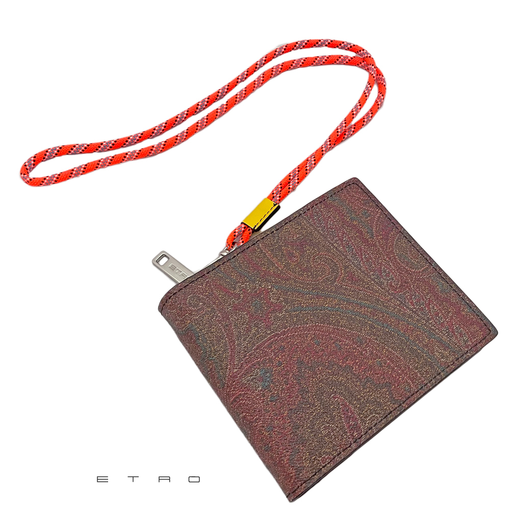 - 新品エトロETROペイズリー柄ストラップ付ラウンドファスナー二つ折り財布★