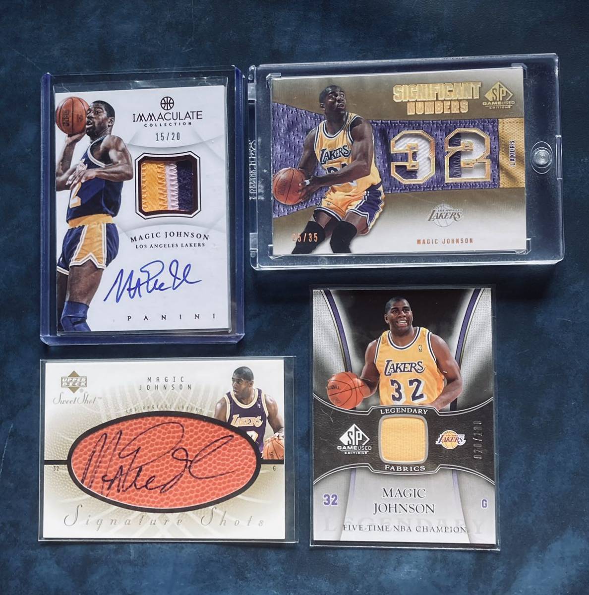 > NBA ロサンゼルス・レイカーズ 『マジック・ジョンソン』 直筆サインカード & ジャージカード 豪華4点セット