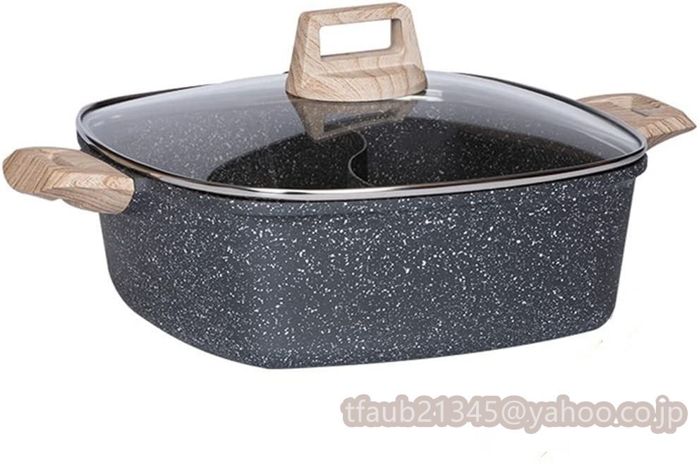 - 両手鍋 仕切り付き 卓上二食鍋 仕切り鍋 S形鴛鴦鍋 木製の取っ手 IH対応 2種類の味を同時に楽しめる 同時に調理可能 鍋パーティに最適