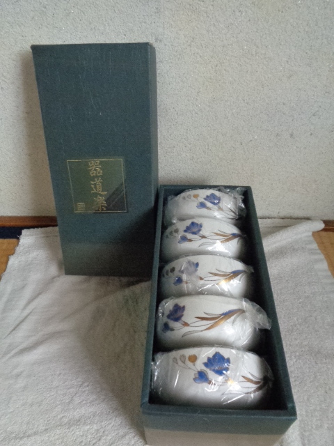 - 陶磁器 器道楽-小鉢5個セット/無尽窯/箱入未使用美品-長期保管品