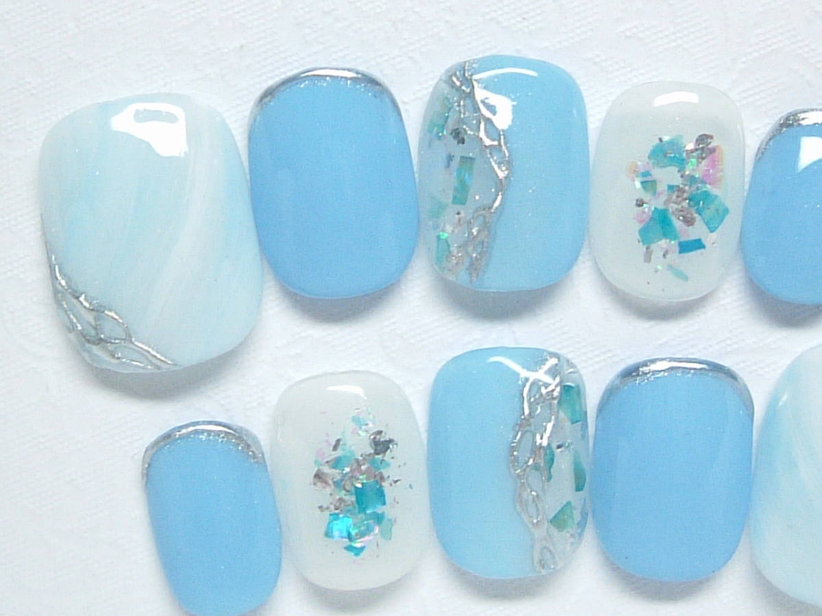 - Y★即決【ベリーショート】シェル★ミラーアクセ★ネイルチップ★806