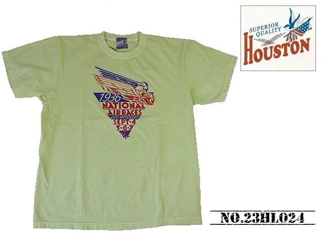 > 【送料無料 44%OFF】HOUSTON ヒューストン ピグメント プリントTシャツ 「BIRD」 NO.23HL024 YELLOW_1(L相当)サイズ