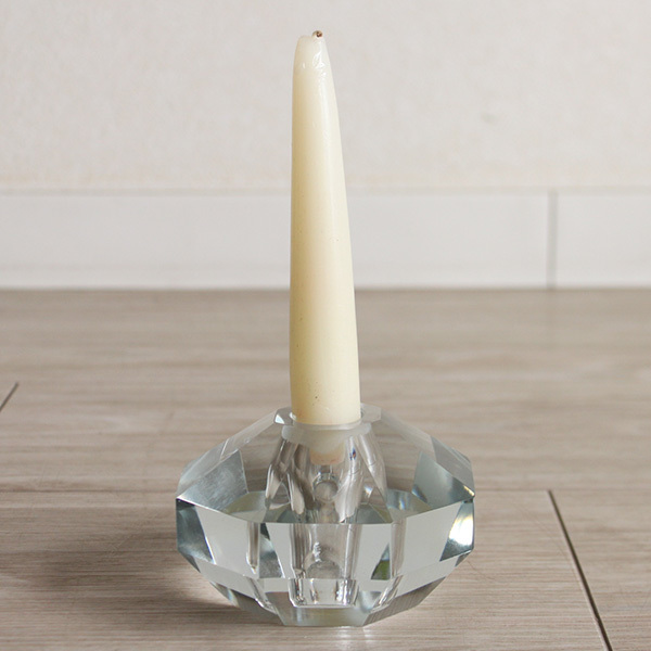- アメリカ製ビンテージ 26面体 透明ガラス キャンドルホルダー 847