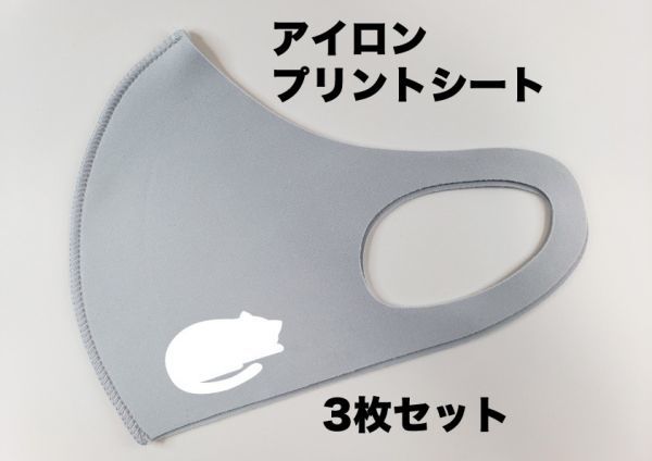 - ★猫 ③【ホワイト】 W40mm×H23mm3枚セット アイロンプリントシート