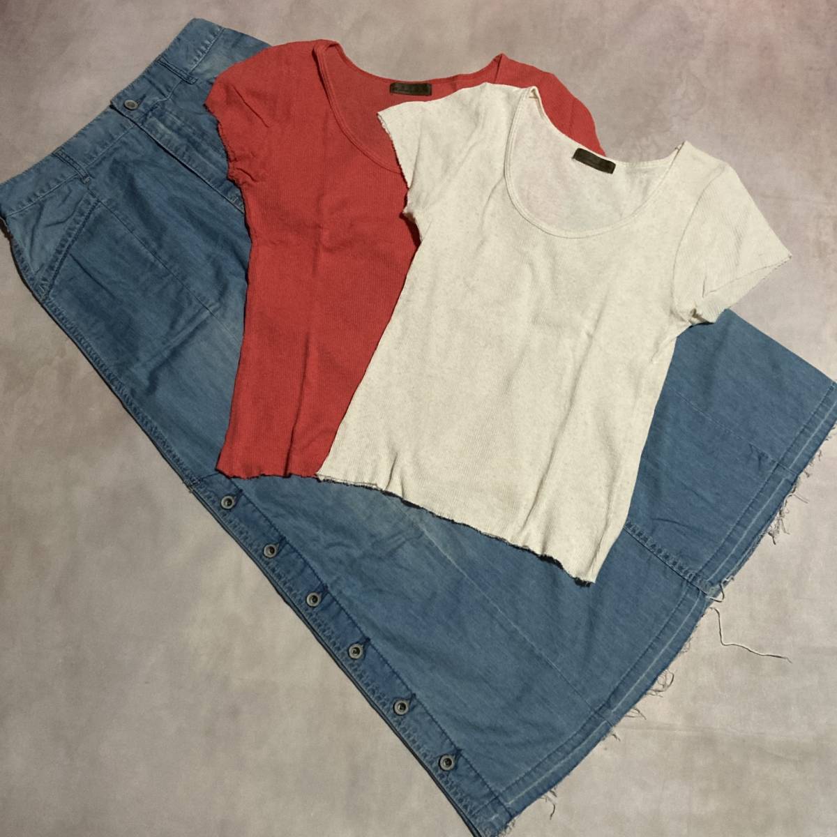 - 3点 ☆ goa ☆ デニム ロングスカート & Tシャツ カットソー / リブ / カットオフ / インディゴ / マキシ / ゴア / レディース