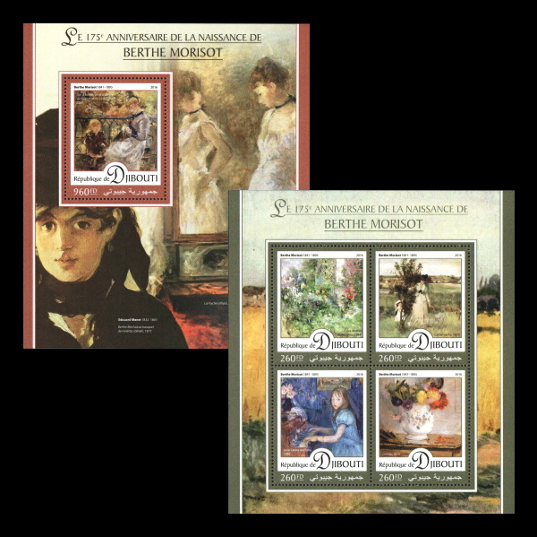 - ■ジブチ切手 2016年 絵画 / ベルト・モリゾ 175周年 シート+4種シート