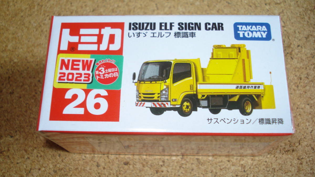 - トミカ 26 いすゞエルフ標識車//2023年6月新車//道路維持作業車