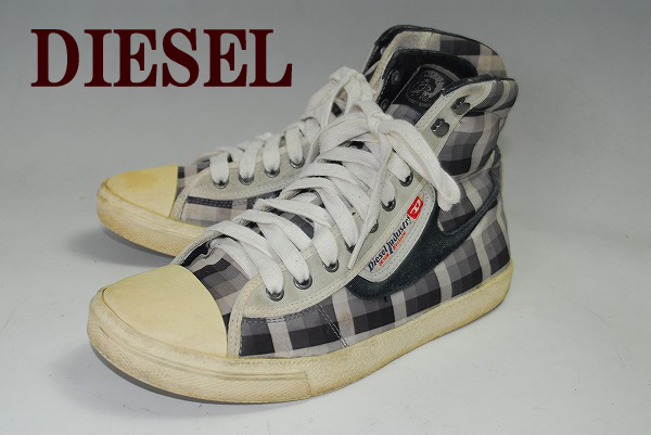 - DSA54718★最終出品です!ディーゼル★26.5cm★紫チェック柄★キャンバス/ハイ★良品★必見!名作定番の1足!★スケート/スニーカー